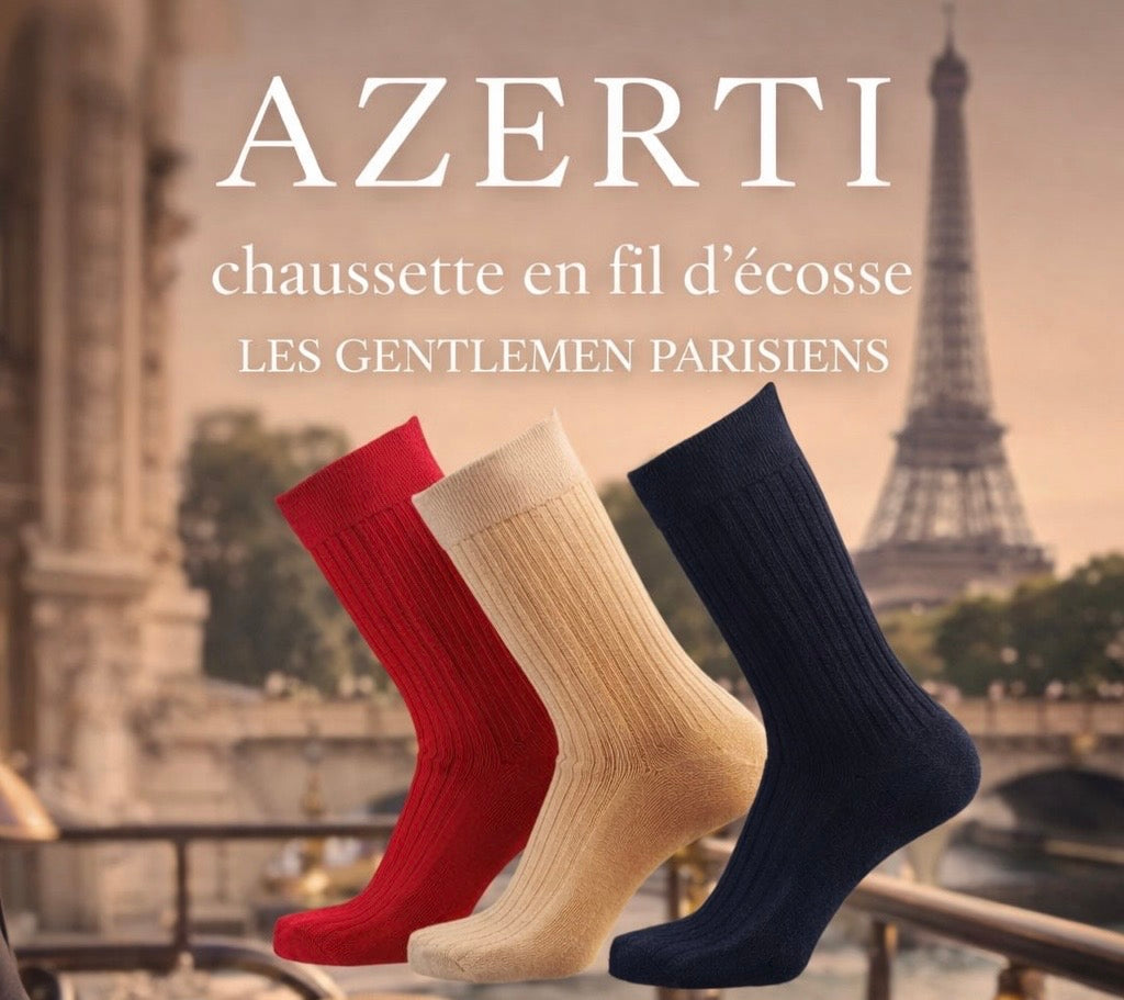 AZERTI paris est une marque française de chaussettes haut de gamme née au coeur de paris, pensée pour l'homme moderne qui cultive l'élégance jusque dans les moindres détails.Inspirée part l'art de vivre parisiens, AZERTIi paris revisite un indispensable du vestiaire masculin avec exigence, style et caractère .Chaque paire de chaussettes incarne un équilibre subtil entre raffinement, confort et modernité, fidèle à l'esprit des gentlemen parisiens . Nos chaussettes sont conçues avec des matières soigneusement sélectionnées et une attention particulière portée au finitions, garantissant une tenue parfaite , un confort durable et une allure irréprochable ,du matin au soir . Plus q'un accessoire, la chaussette devient chez AZERTI paris une signature, un symbole discret d'élégance et de distinction . Parce que le véritable style commence souvent là où peu regarde .